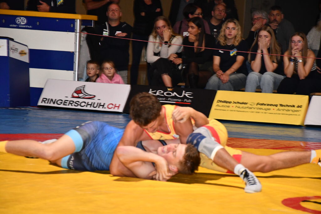 Im ersten Duell liess Stone Perlungher seine Klasse im freien Stil aufblitzen. Er kam vor Ablauf der ersten Runde nach schnell vorgetragenen Angriffen zu einem Schultersieg. Damian von Euw ging nach seinem harten WM-Einsatz gegen den einstigen Kaderringer Marc Weber verhalten zur Sache, liess aber seinem Gegner keinen Spielraum und führte nach drei Minuten mit 1:0. Nachdem seinem Kontrahenten vom Wettkampfleiter wegen Passivität die Bodenlage angeordnet wurde, spielte von Euw seine Überlegenheit mit tollen Überwürfen aus. Am Ende lag er deutlich mit 12:0 vorne. Gespannt war man auf das Duell des Freistilers River Perlunger im griechisch-römisch Stil gegen Mike Schweizer. Zur grossen Überraschung setzte Perlungher sein Gegenüber sofort unter Druck, holte in regelmässigen Abständen Zähler und kam noch vor Ablauf der ersten Runde zu einem Schultersieg. Nach einjährigem Unterbruch kehrte Andrii Vyshar gegen Kimi Käppeli auf die Matte zurück. Nach einer 3:0 Führung bei Halbzeit, machte sein Gegner Terrain gut und liess zwischenzeitlich Spannung aufkommen. Vyshar kämpfte in dieser schwierigen Phase taktisch klug. Am Ende behielt er mit 5:3 das glücklichere Ende. Da sah man, dass er nach wie vor ein schlauer Fuchs auf der Matte ist. Wer dachte, dass Freiamt zurückschlagen würde, sah sich getäuscht. Wesal Akbari kam gegen Tobias Lüscher dank einer starken zweiten Runde zu einem 14:4-Sieg. Zur Pause lag Einsiedeln mit fünf Siegen überraschend hoch mit 16:2 vorne.