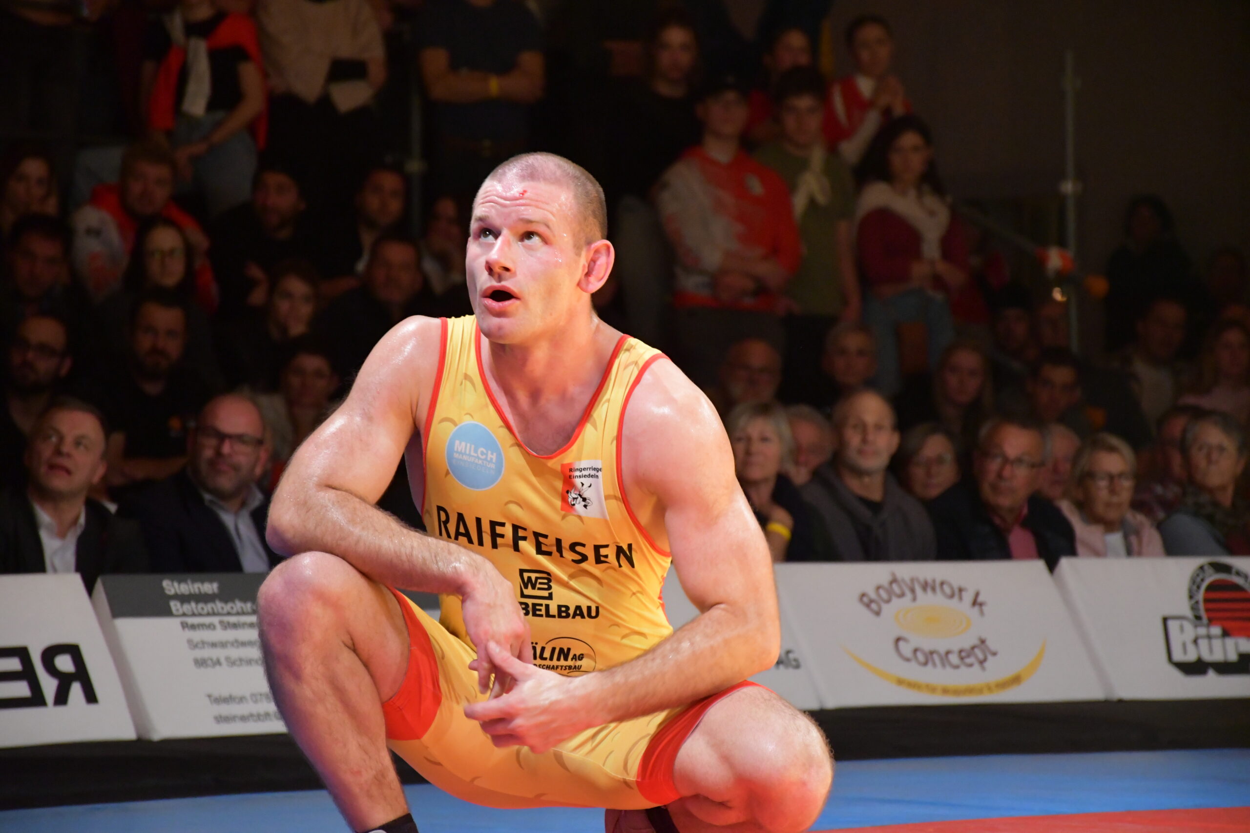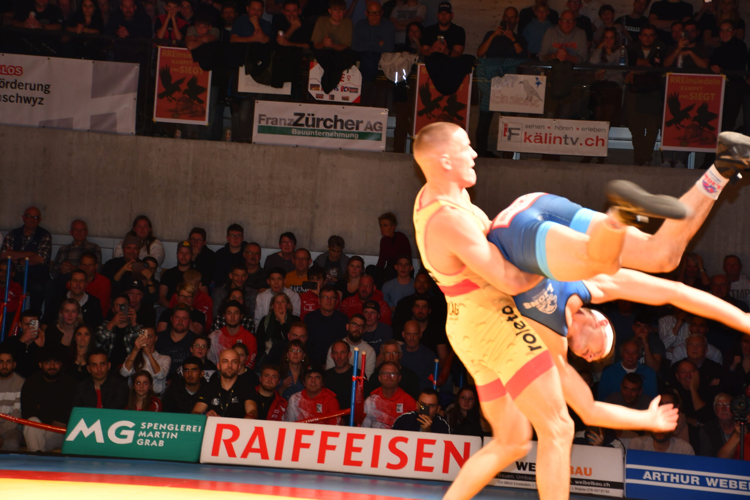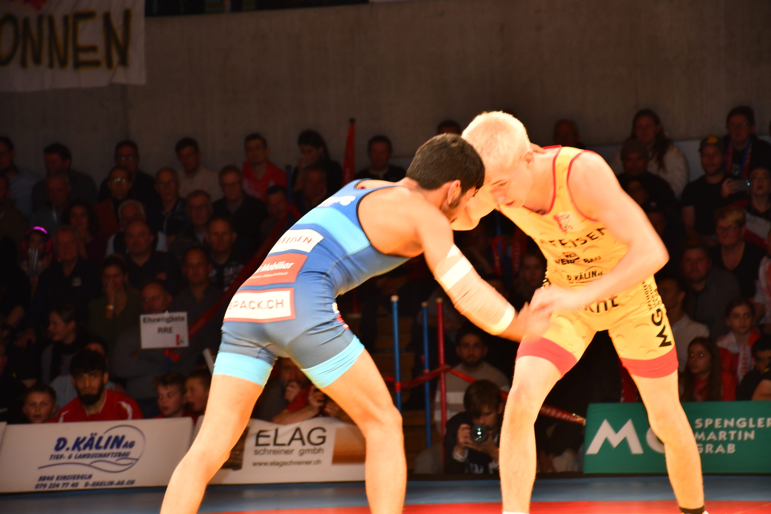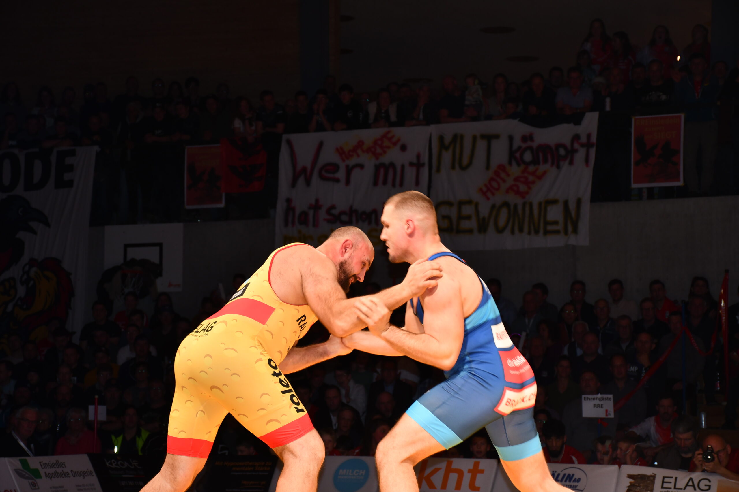 Wer geglaubt hatte, dass sich Blatt nun zugunsten des 18-fachen Meisters wenden würde, sah sich vorerst getäuscht. Damian von Euw ging gegen Daniel Häfliger resolut ans Werk und brillierte mit herrlichen Würfen. Nach 1:14 Minuten hatte er seinen Kontrahenten mit 17:0 ausgespunktet.  Freistiler Kay Neyer musste sich für das Team im Greco opfern und gegen den Internationalen Michael Portmann antreten. Trotz einer grossen Willensleistung begann sich seine Niederlage früh abzuzeichnen. Er musste in der zweiten Runde technisch überhöht (17:2) den Kürzeren ziehen. Doch ging er trotz dieses deutlichen Verdikts mit einem Punktegewinn nicht ganz leer aus.  Andreas Burkard kreuzte die Klingen mit Mansur Mavlaev,  aktuell Dritter der U23-WM. Dabei konnte Burkard seinem übermächtigen Gegner eine Zeitlang trotzen, geriet aber bei den blitzschnell vorgetragenen Beinangriffen seines Kontrahenten zusehends in Rückstand. Mitte der zweiten Runde  musste er sich mit 16:0 geschlagen geben. Nach diesen beiden Niederlagen lag Einsiedeln mit 14:17 zurück.