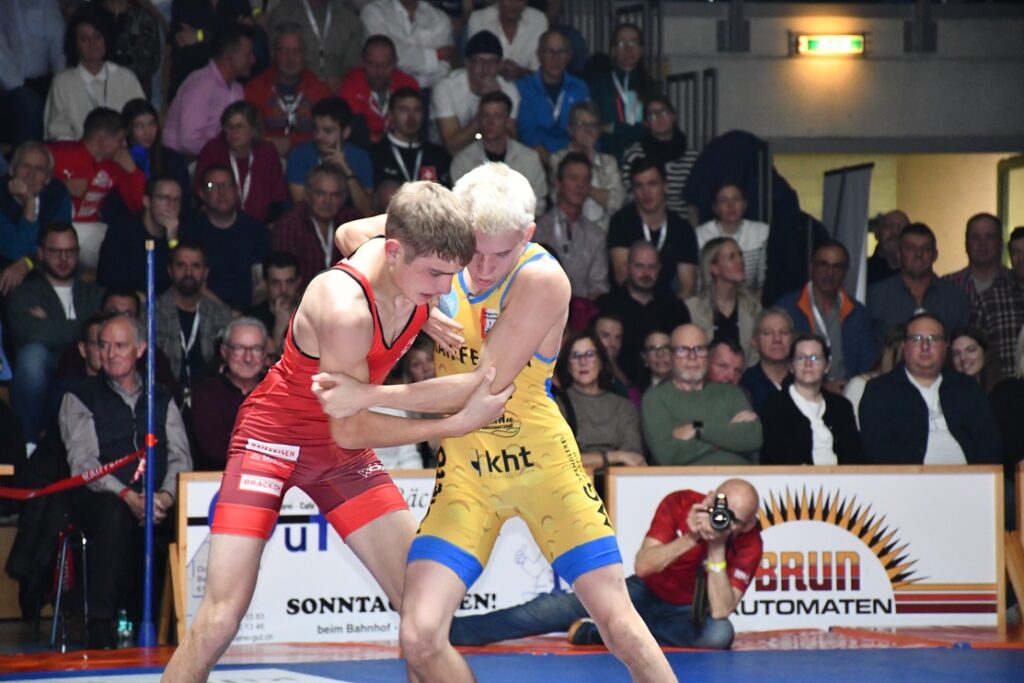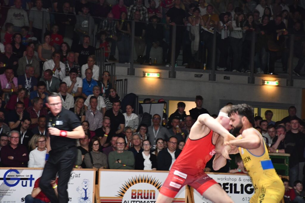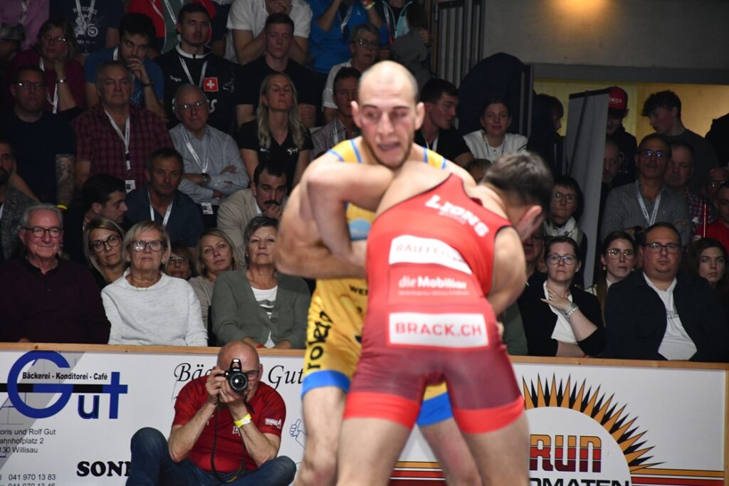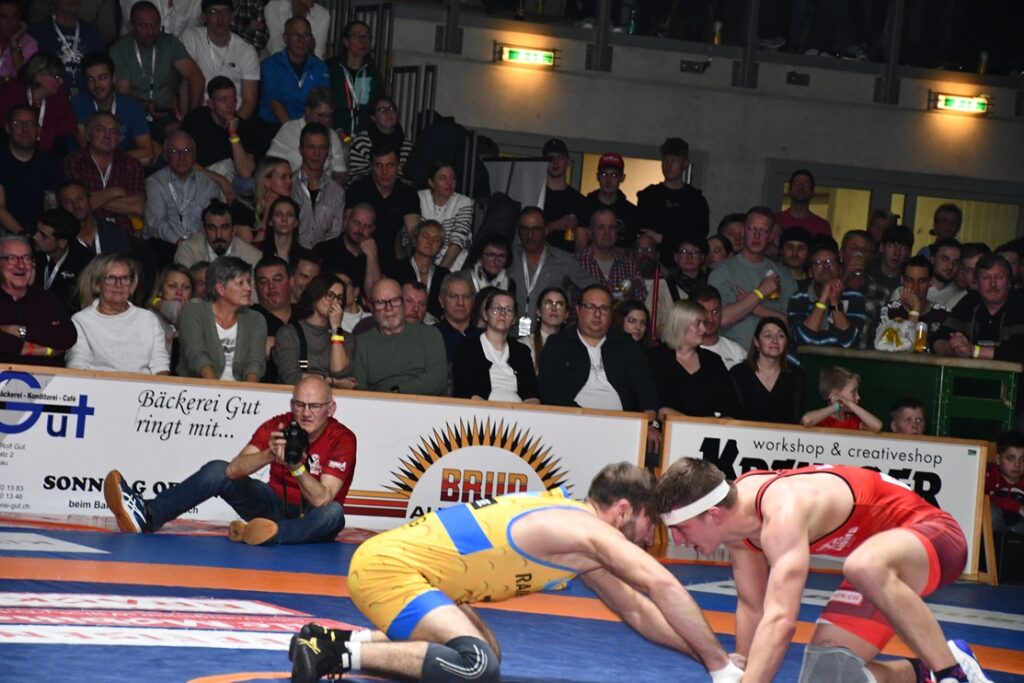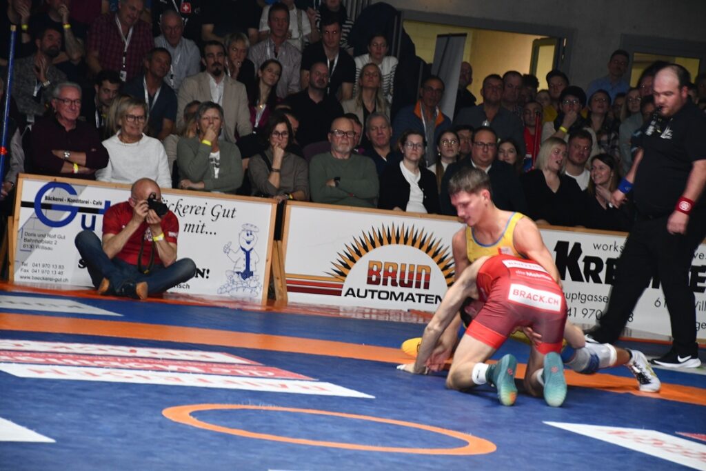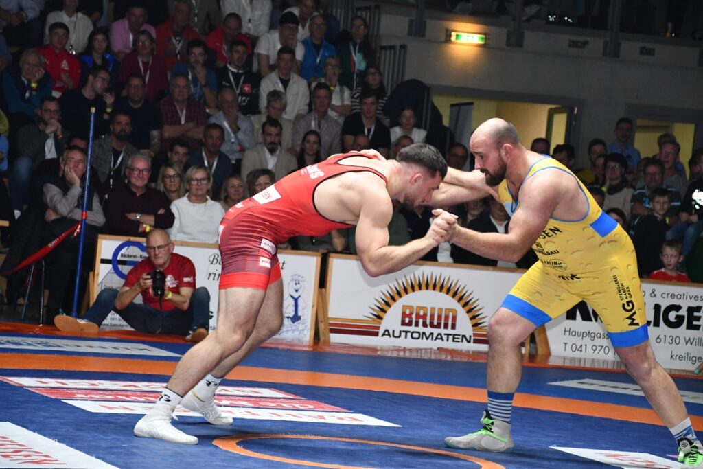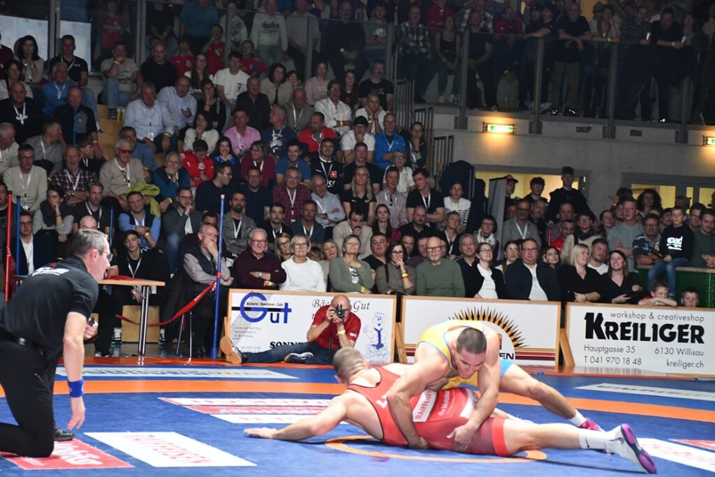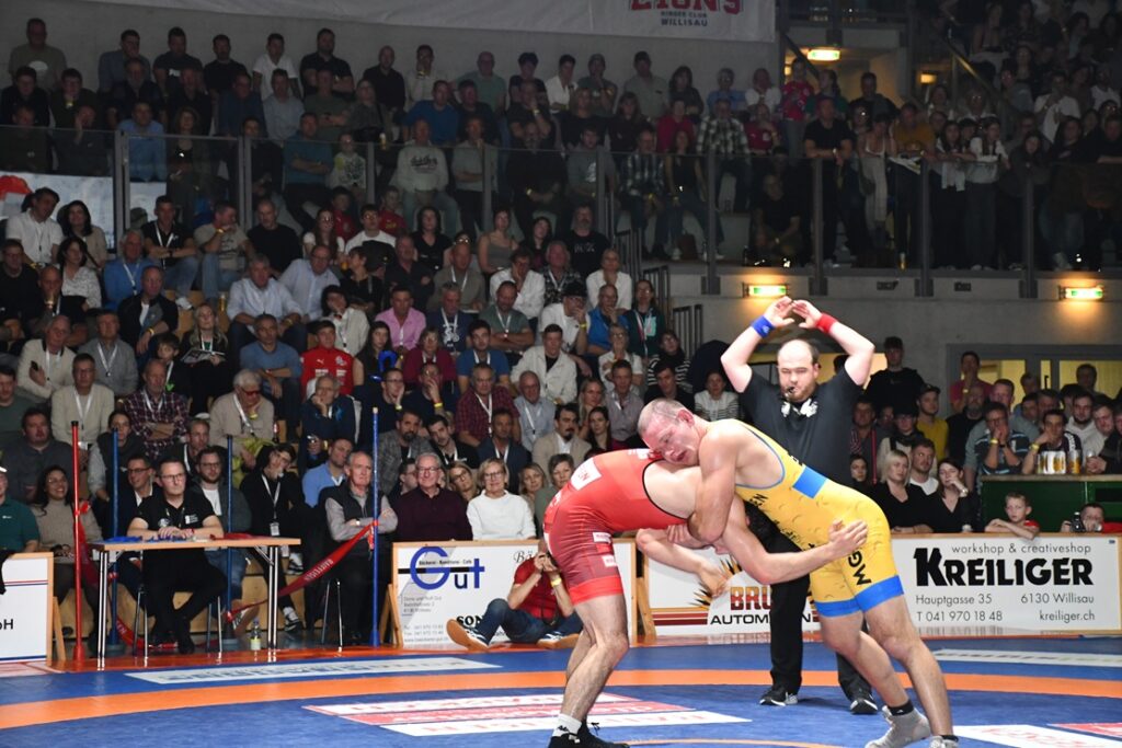 Die Willisauer Sporthalle präsentierte sich mit 2’300 Zuschauern, wovon rund 500 von Einsiedeln, rappelvoll. Bereits beim öffentlichen Abwiegen machten die Fans Stimmung für ihre Athleten. Vor den Augen der Luzerner Politik- und Sportprominenz blieb aber noch alles offen. «Kann Einsiedeln den Kampf noch drehen?» war die meistgehörte Frage. Dafür hätte es der einen oder anderen Überraschung bedurft. Ein Sieg im Leichtgewicht hätte das Signal zur Aufholjagd sein können, was dem Freistiler Stone Perlungher nach einem harten Kampf gegen Sven Krummenacher mit 3:1 gelang. Die Gastgeber, von der lautstarken Unterstützung ihrer Fans getragen, lagen in Rücklage. Sven Neyer hielt dem Internationalen Samuel Scherrer hartnäckig dagegen, aber mehr als Schadensbegrenzung lag bei der 14:0-Niederlage nicht drin. Im Duell der beiden Greco-Spezialisten Damian in von Euw und Delian Alishahi wurde eine enge Sache erwartet. Doch von Euw beeindruckte mit einer starken Leistung und riss das Geschehen mit herrlichen Überwürfen gleich an sich. Wegen unsauberer Verteidigung wurde der Willisauer bei der zweiten Verwarnung in ersten Runde nach 2:28 Minuten disqualifiziert. Das Duell zwischen den beiden Freistilern River Perlungher und Timon Zeder bot über weite Strecken einen offenen Schlagabtausch. Nachdem die erste Runde ausgeglichen verlief, vermochte Perlungher den Willisauer «Löwen» mit 7:2 zu bodigen, womit nicht viele gerechnet hätten. Der in dieser Saison ausgezeichnet disponierte Jan Neyer vermochte dem Greco-Spezialisten Jonas Müller lange entgegenzuhalten. In der zweiten büsste er bei einem Durchdreher Punkte ein und verlor mit 4:1. Damit lag Einsiedeln bei Halbzeit überraschend mit 7:10 in Front.