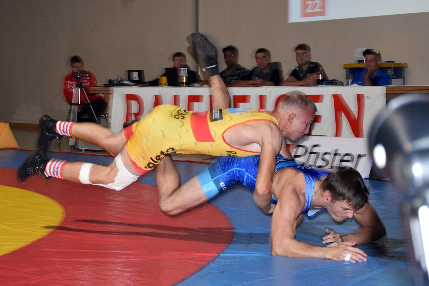 Kay Neyer zündete gleich zu Beginn gegen Nicolas Steiger mit einer Viererwertung ein ringerisches Feuerwerk. Er liess sich von seinem Gegner nichts vormachen und konnte ihn schultern.