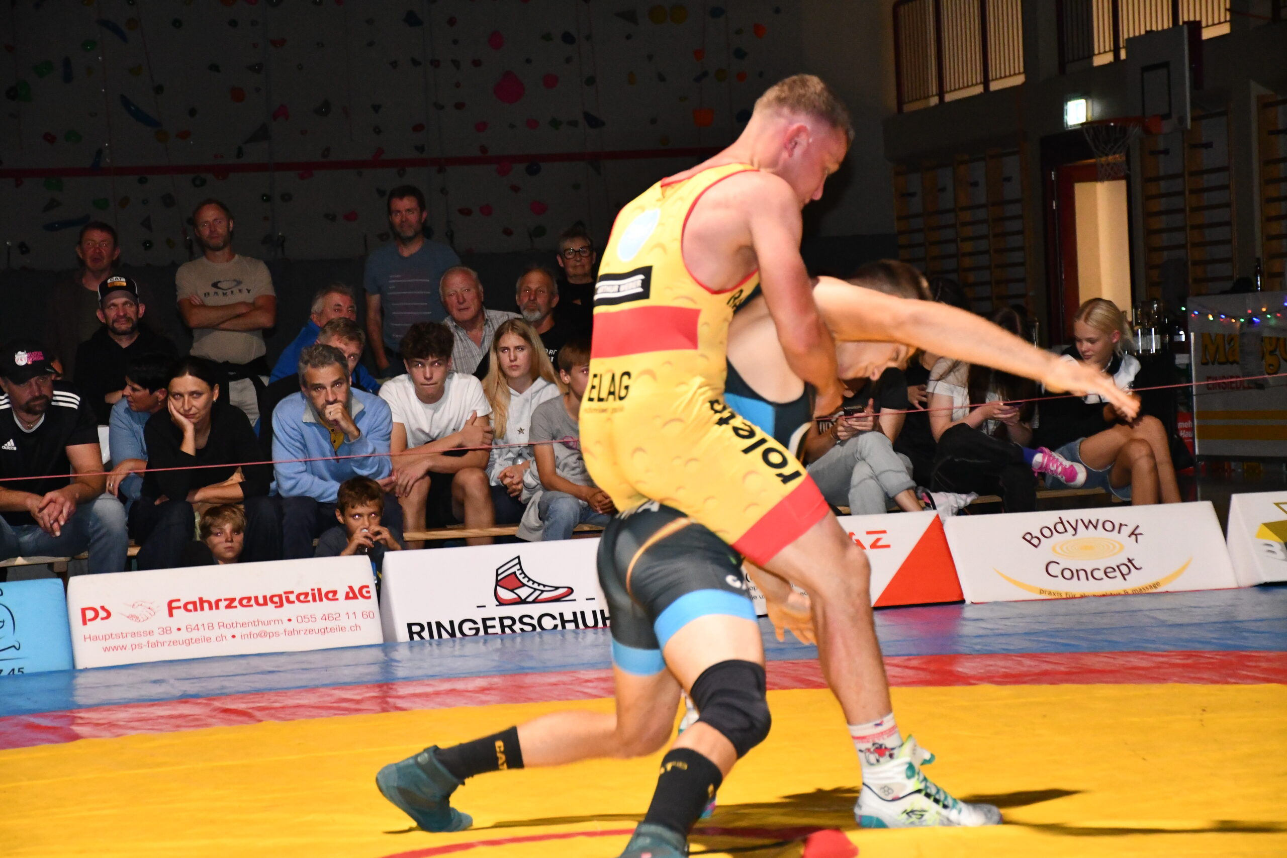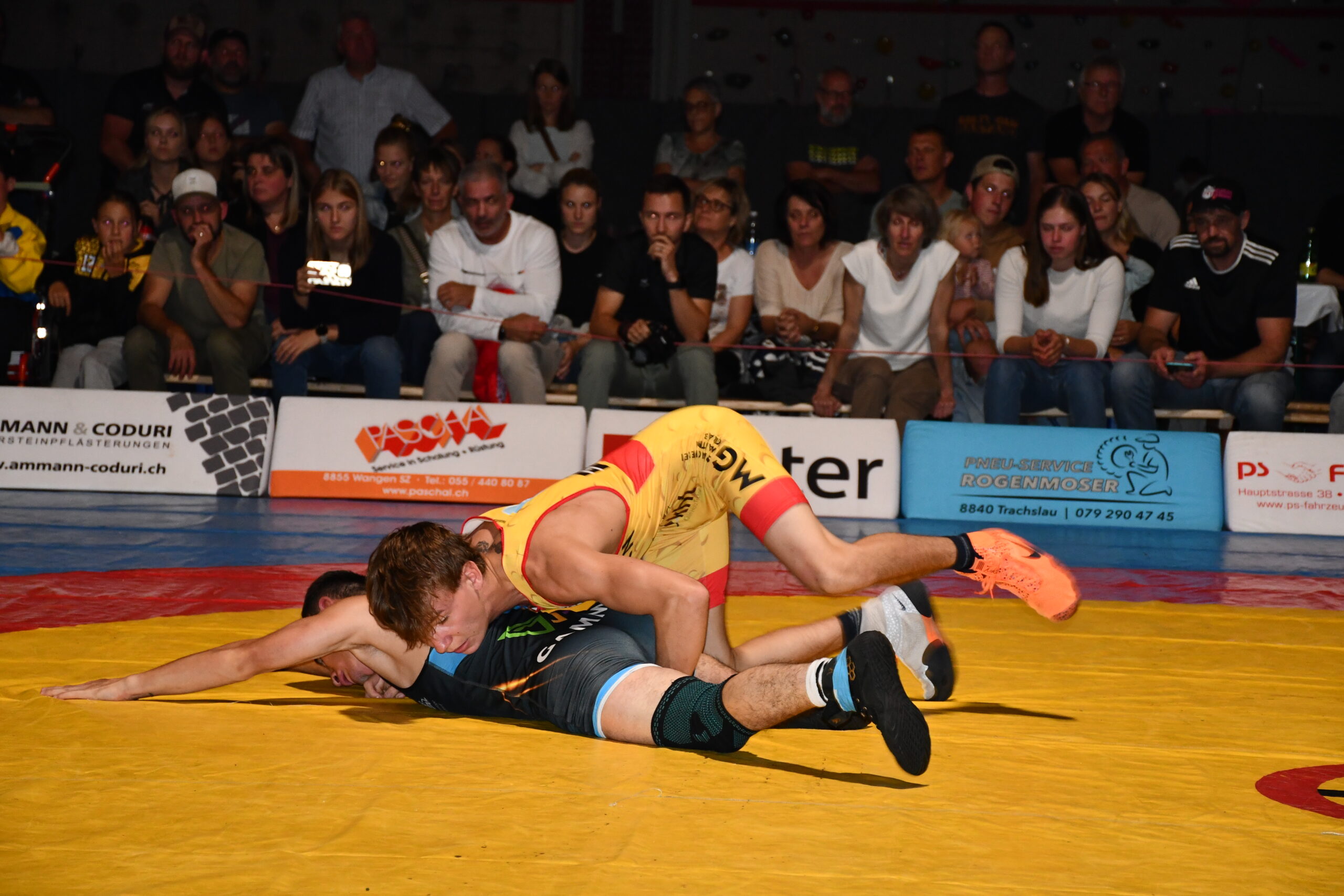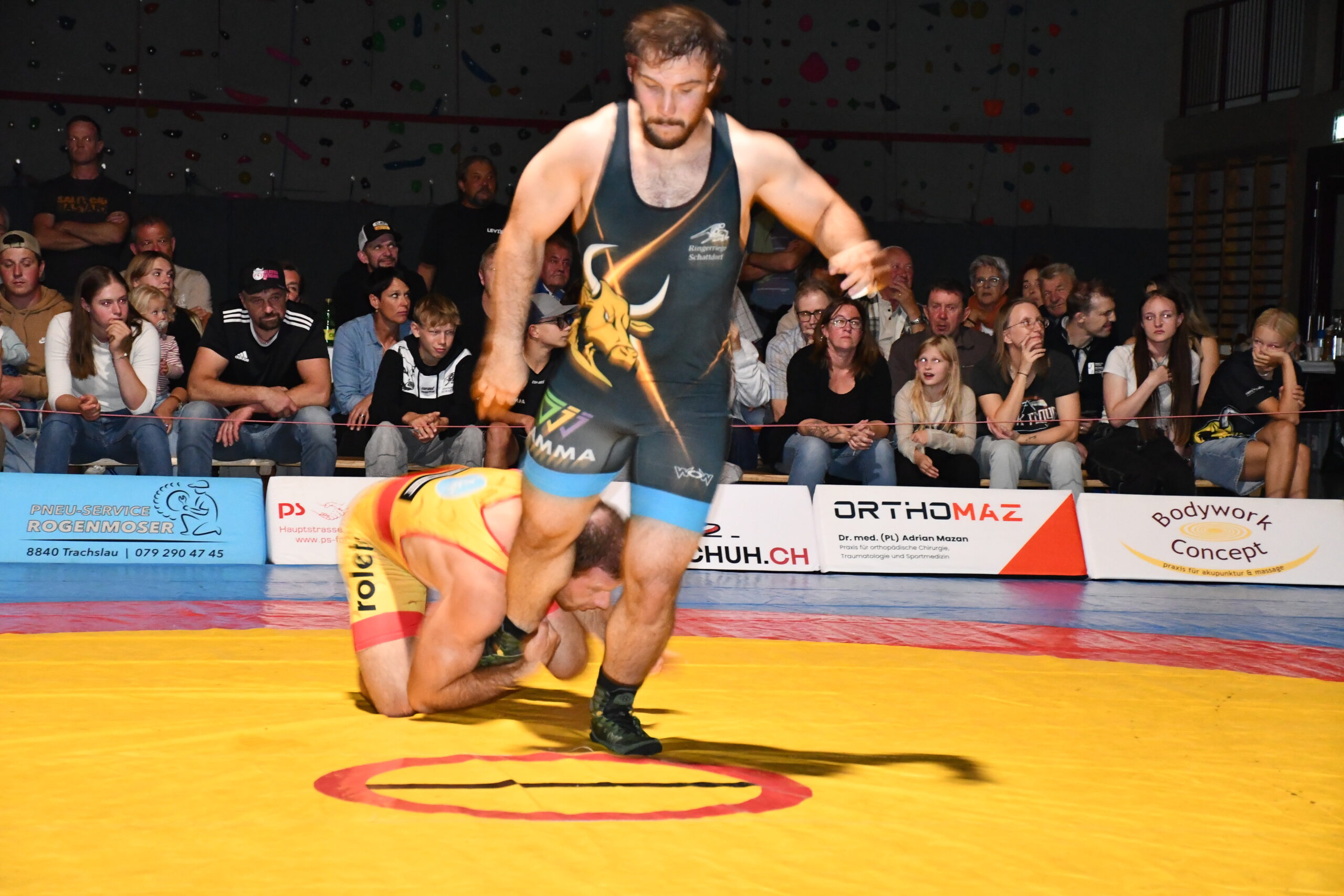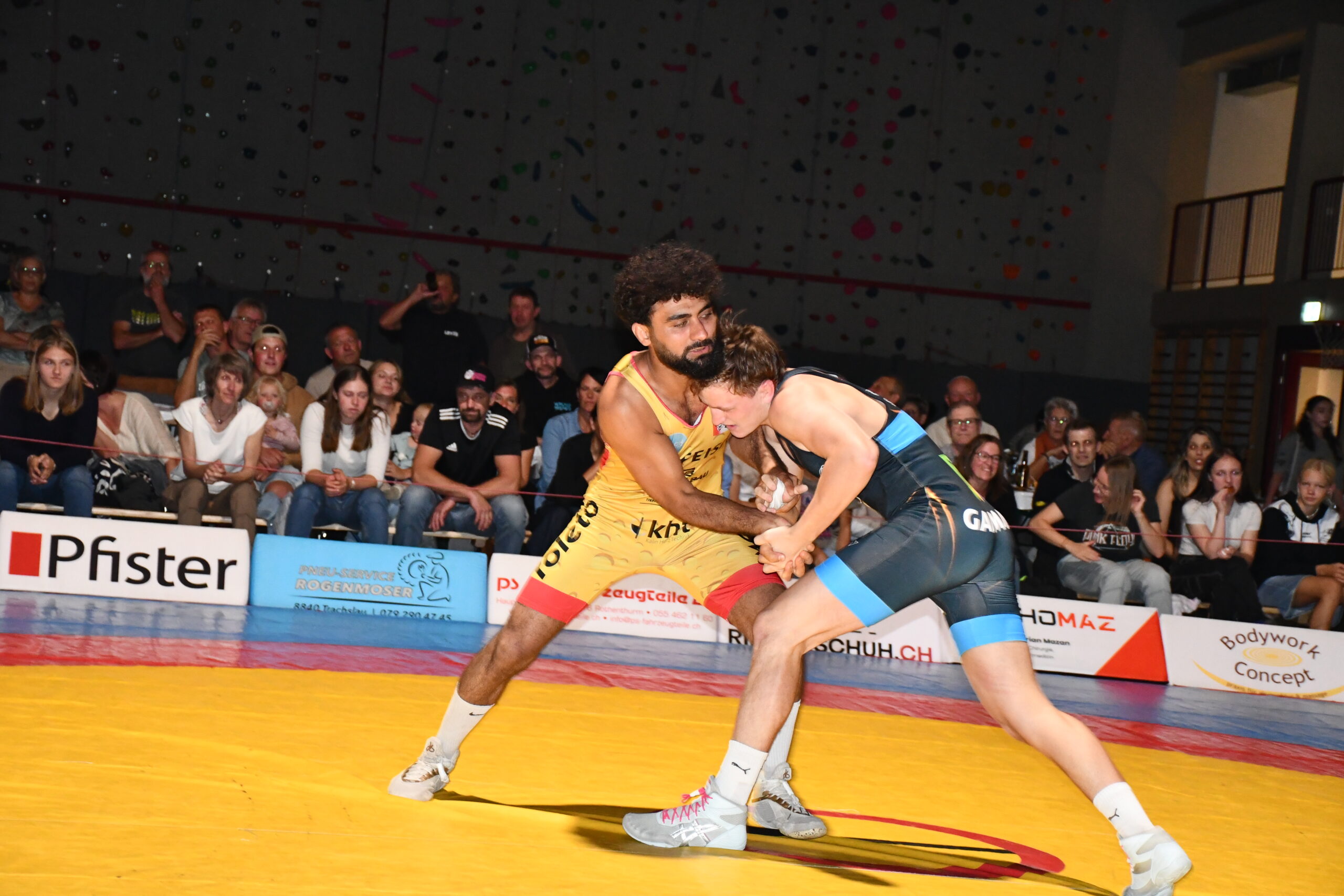 Die Ringer beider Teams zeigten sich in Offensivlaune und vermieden mehrheitlich taktisches Geplänkel. So entstand ein offener Schlagabtausch. Bereits der erste Fight brachte Stimmung in die Halle. Stone Perlungher riss mit sehenswerten Beinangriffen gegen Hossein Alizada die Führung an sich und kam vor Ablauf der ersten Runde zu einem Schultersieg. Im Schwergewicht traf Damian von Euw auf den 130 Kilogramm schweren Hünen Christoph Waser. In einem taktisch klug geführten Duell liess sich der 40 Kilo leichtere von Euw von der körperlichen Masse seines Gegners nicht erdrücken. Er behielt die Übersicht und holte einen Schultersieg. River Perlungher musste in seinem nicht gerade geliebten Greco-Stil antreten. Doch hielt er sich gut und konnte die Niederlage mit 7:1 gegen den WM-Teilnehmer Thomas Epp in Grenzen halten. Spannung war im Kampf zwischen Andreas Burkard und Flavio Herger angesagt. Burkard führte die technisch etwas feinere Klinge, ging energisch zur Sache und hatte mit diesen Attributen einen 14:0-Sieg in der Tasche. Das Geschehen zwischen Neuzuzug Ayar Abdul Habib und dem unbequemen Simon Gerig verlief über weite Strecken ausgeglichen, bis Habib mit einer Wertung entscheidend in Führung ging. Dann kippte plötzlich das Momentum zu seinen Gunsten und es gelang ihm, die Führung zum 11:4-Sieg auszubauen. Einsiedeln lag damit bei Halbzeit mit 15:4 vorn.