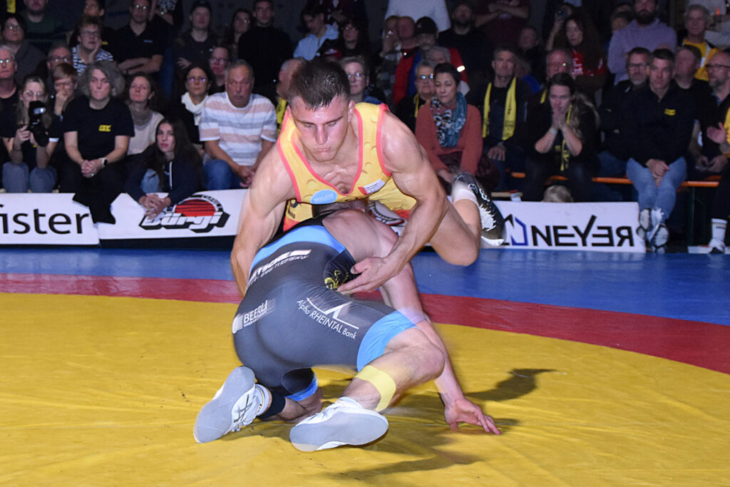 Die Kämpfe hatten viel Spannung zu bieten. Zum Auftakt hätte man erwartet, dass Freistiler Stone Perlungher gegen den Greco-Spezialisten Levin Meier einen schweren Stand haben dürfte. Doch er stellte sich ausgezeichnet auf seinen Kontrahenten ein, ging sogar in Führung und verlor nach turbulenten Szenen erst in der Schlussphase mit 10:9, holte aber einen wertvollen Mannschaftspunkt. Sven Neyer ging gegen den ungemein gefährlichen Damian Dietsche auf die Matte. Er wurde gleich zu Beginn mit einem Armzug (4:0) erwischt und musste gegen den unberechenbaren Rheintaler höllisch auf der Hut sein. Es gelang ihm, den Rückstand mit kleinen Wertungen wettzumachen und sich letztlich hauchdünn mit 7:6 durchzusetzen. River Perlungher traf bis 61 kg, Freistil, auf Dominik Lartiz, der auch im Mixed Martial Arts (MMA) erfolgreich unterwegs ist. Der Gastringer setzte bald einmal die Akzente, kam mit guten Griffkombinationen immer wieder durch und führte bei Halbzeit mit 4:0. Perlungher musste auch danach unten durch, konnte aber bei der 14:0-Niederlage die Höchststrafe gerade noch vermeiden. Damian von Euw und Ramon Betschart lieferten sich einmal mehr ein Duell auf Augenhöhe. Nach der ersten Runde lag von Euw mit 1:0 im Hintertreffen, doch konnte er ausgleichen und mit 4:1 gewinnen. Jan Neyer wehrte sich gegen das bulgarische Greco-Ass Dimitar Sandov mit allen Mitteln, es gelang ihm die Niederlage mit 12:0 in Grenzen halten. Damit lag Einsiedeln zur Pause 5:10 zurück, was sich für den weiteren Verlauf als schwere Hypothek erwies. Wohl nur noch die kühnsten Optimisten rechneten mit einem Sieg.