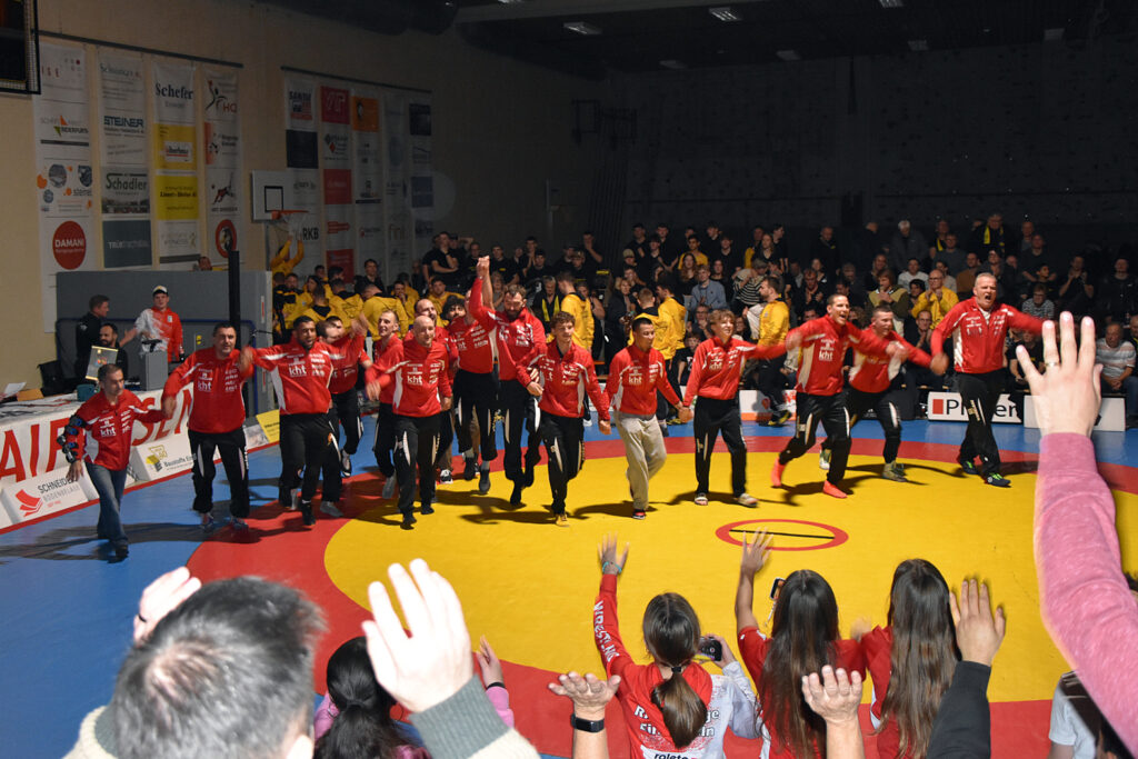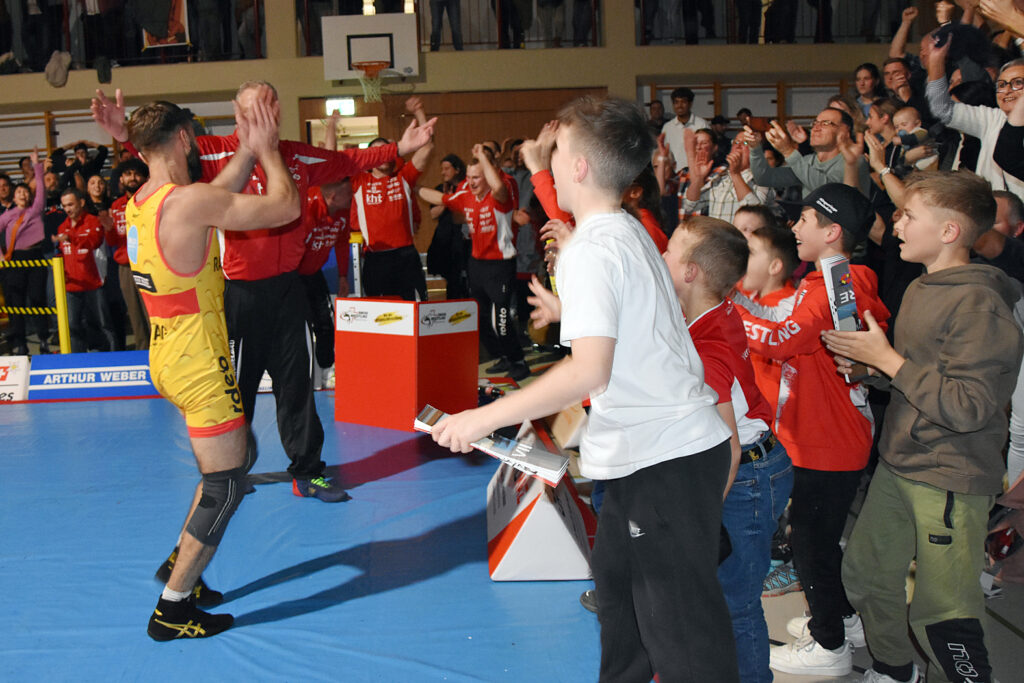Welche Kräfte die Einsiedler nicht zuletzt dank der Unterstützung des Heimpublikums freizusetzen vermochten, zeigte Andreas Burkard gegen Robin Zwick. In einem von der Taktik geprägten Duell ging er vorsichtig ans Werk und führte nach drei Minuten mit 1:0. Sein Kontrahent bot ihm kräftig Stirn, doch wusste er die Konterversuche im Keime zu ersticken. Bei seinem 5:0-Sieg liess er seinem gefährlichen Gegner keine Wertung zu. Das Aufeinandertreffen zwischen den beiden Freistilern Kay Neyer und Sandro Hungerbühler bis 70 Kilogramm verlief über weite Strecken spannend. Neyer kämpfte konzentriert, konterte in der zweiten Hälfte mit wirkungsvollen Beinangriffen geschickt und blieb mit 10:3 siegreich. Dank dieses Erfolges gab es drei wichtige Zähler zum Gleichstand von 11:11. Doch deswegen war noch lange nichts unter Dach und Fach. Ganz im Gegenteil: Das Kribbeln blieb aufrecht. Der Freiburger Matthias Käser in Einsiedler Diensten traf auf den ukrainischen Klasseringer Artemi Utochkin. Er gab alles, liess sich aber durch einen Hüfter erwischen. Beim Stand von 11:15 war vor den beiden letzten Kämpfen Hochspannung angesagt. Jan Walker und Dorien Hutter, die sich in dieser Saison zwei enge Duelle lieferten, waren einer grossen Belastung ausgesetzt. Vor einer Woche musste Walker eine knappe 5:3-Niederlage hinnehmen. Diesmal schlug das Pendel auf seine Seite. Er kämpfte hochkonzentriet, ging in diesem verbissen geführten Duell mit 1:0 in Führung, die er nicht mehr preisgab und mit 3:1 als Sieger ausgerufen wurde. Das war eine schöne Revanche zum exakt richtigen Zeitpunkt. Beim letzten Duell zwischen Pavel Untila und Michel Steger mussten beim Stande von 13:16 die Würfel fallen. Rein rechnerisch konnten Einsiedeln Kriessern noch überholen, doch dafür musste das Punktemaximum her, während Kriessern nur noch einen Zähler für die Krönung brauchte. Eine äusserst delikate Aufgabe für beide Seiten. Der Einsiedler gab den Ton an und sammelte gegen seinen defensiv ausgezeichnet agierenden Gegner mit seiner Beinarbeit fleissig Punkte. 27 Sekunden vor Schluss holte er mit einer Zweierwertung das 15:0 und damit den 17:16-Sieg für Einsiedeln. «Obschon mir bewusst war, dass ich vier Mannschaftspunkte holen musste, versuchte ich alles auszublenden, viele Gedanken machte ich mir nicht mehr und gab einfach alles», sagte der Matchwinner. Beim Gesamtstand von 33:33 hatte Einsiedeln mit elf Einzelsiegen gegenüber Kriessern mit neun den Finaleinzug geschafft. Das sorgte für Schreie aus den fast 700 Kehlen. Die meisten aus Freude. Aber manche auch nicht. Wer Kriessern im Herzen trug, der brüllte aus Schmerz. Anschliessend lagen sich die Einsiedeln Ringer und das Betreuerteam in den Armen und liessen sich von den Fans feiern. Mit dem Erreichen des Finals haben sie einen Meilenstein geschafft. Das letzte Ringer-Finale verlor Einsiedeln 1989 gegen Kriessern mit lediglich einem Punkt Unterschied. Vier Jahre früher holte Einsiedeln die Silbermedaille, doch stand Kriessern frühzeitig als Meister fest.