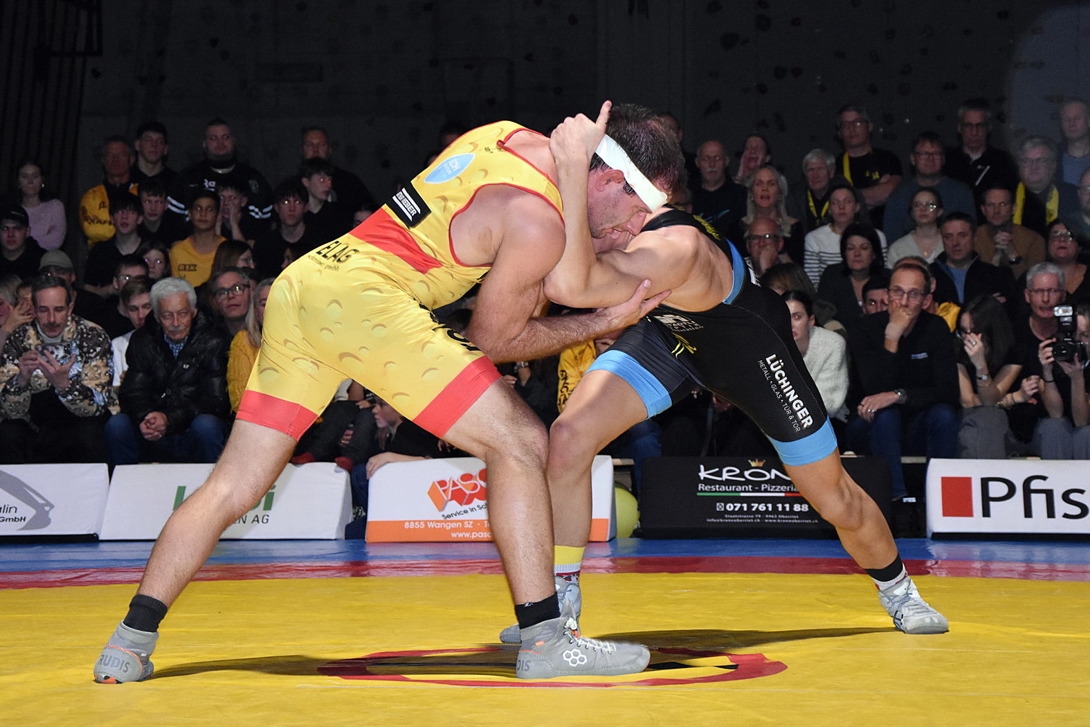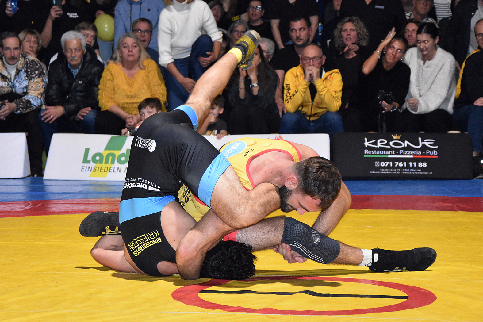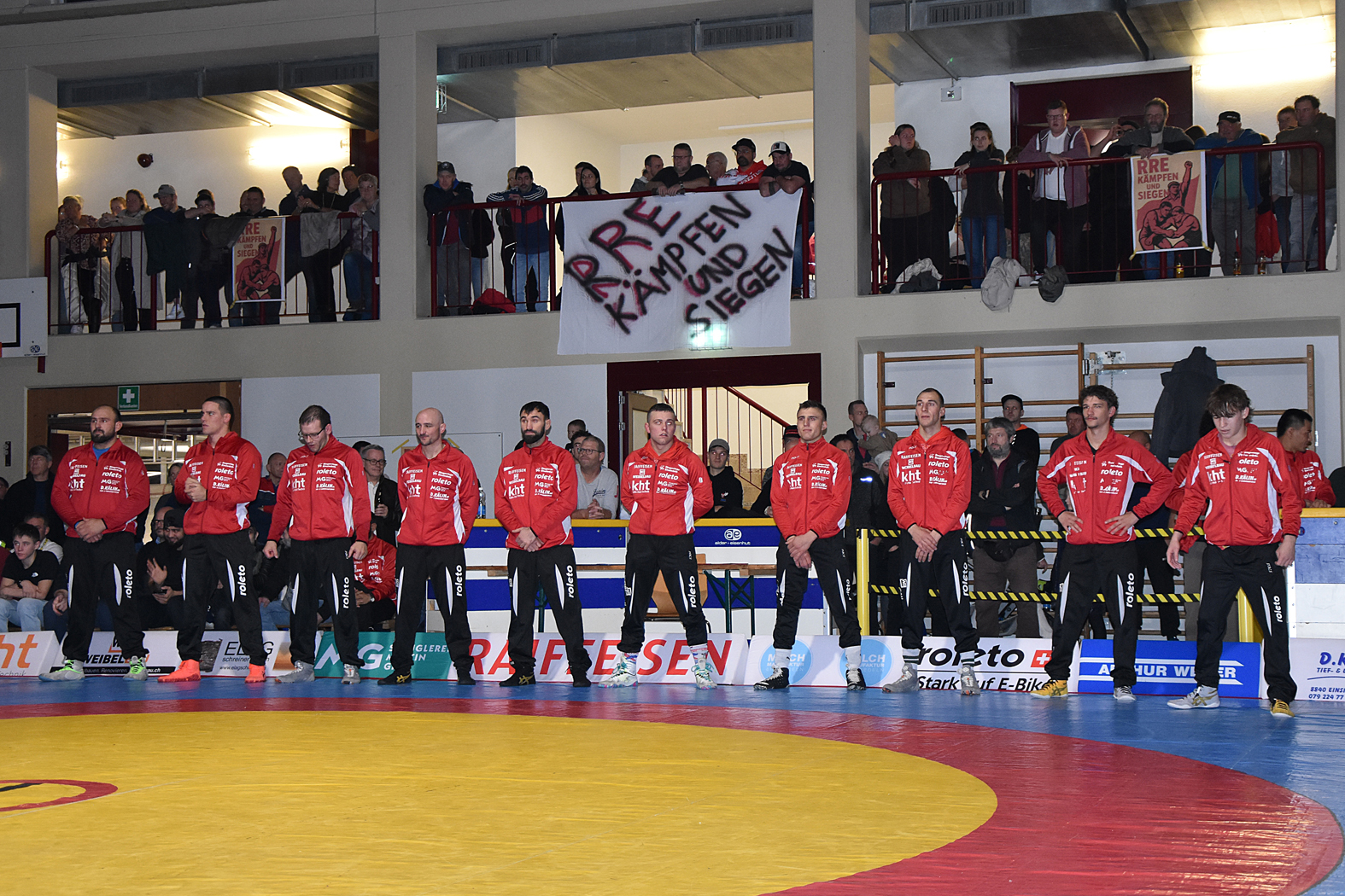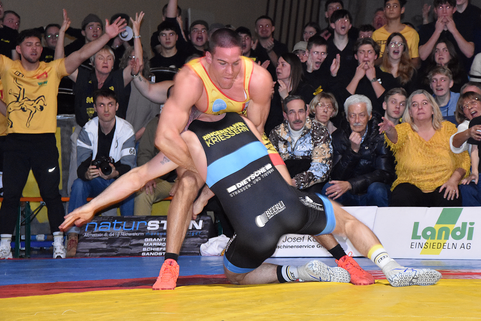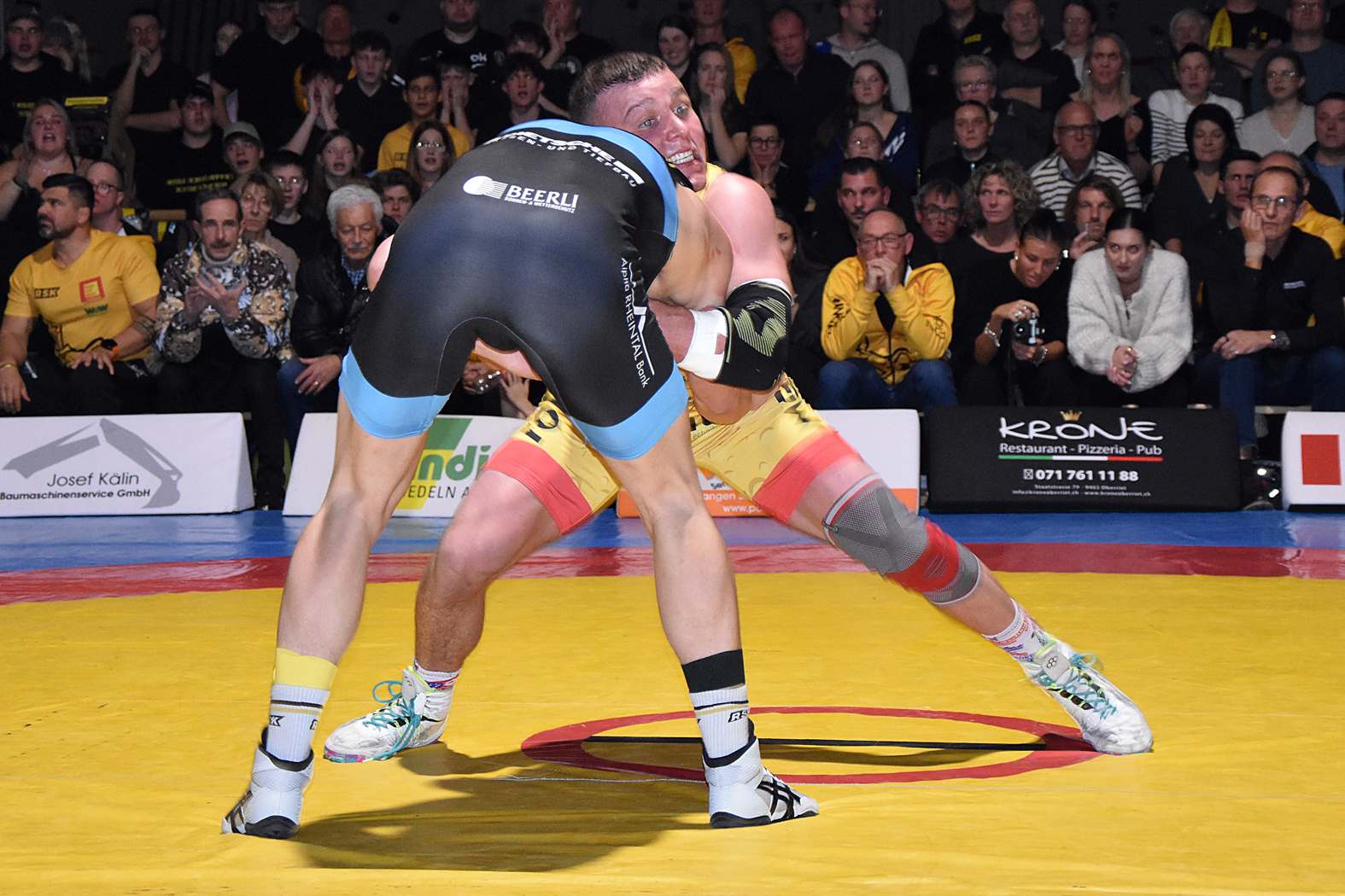 Die Kämpfe hatten viel Spannung zu bieten. Zum Auftakt hätte man erwartet, dass Freistiler Stone Perlungher gegen den Greco-Spezialisten Levin Meier einen schweren Stand haben dürfte. Doch er stellte sich ausgezeichnet auf seinen Kontrahenten ein, ging sogar in Führung und verlor nach turbulenten Szenen erst in der Schlussphase mit 10:9, holte aber einen wertvollen Mannschaftspunkt. Sven Neyer ging gegen den ungemein gefährlichen Damian Dietsche auf die Matte. Er wurde gleich zu Beginn mit einem Armzug (4:0) erwischt und musste gegen den unberechenbaren Rheintaler höllisch auf der Hut sein. Es gelang ihm, den Rückstand mit kleinen Wertungen wettzumachen und sich letztlich hauchdünn mit 7:6 durchzusetzen. River Perlungher traf bis 61 kg, Freistil, auf Dominik Lartiz, der auch im Mixed Martial Arts (MMA) erfolgreich unterwegs ist. Der Gastringer setzte bald einmal die Akzente, kam mit guten Griffkombinationen immer wieder durch und führte bei Halbzeit mit 4:0. Perlungher musste auch danach unten durch, konnte aber bei der 14:0-Niederlage die Höchststrafe gerade noch vermeiden. Damian von Euw und Ramon Betschart lieferten sich einmal mehr ein Duell auf Augenhöhe. Nach der ersten Runde lag von Euw mit 1:0 im Hintertreffen, doch konnte er ausgleichen und mit 4:1 gewinnen. Jan Neyer wehrte sich gegen das bulgarische Greco-Ass Dimitar Sandov mit allen Mitteln, es gelang ihm die Niederlage mit 12:0 in Grenzen halten. Damit lag Einsiedeln zur Pause 5:10 zurück, was sich für den weiteren Verlauf als schwere Hypothek erwies. Wohl nur noch die kühnsten Optimisten rechneten mit einem Sieg.